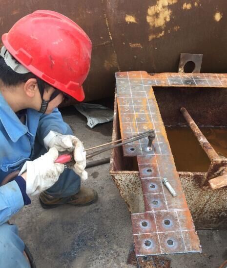 猶記4月間,郭雨宏師傅帶領(lǐng)胡建平和鄭武博為6#爐更換打字架——只見在郭師傅的指揮下,行車不斷將新打字架起吊、落下,對打字架的安裝位置進(jìn)行著精細(xì)調(diào)整,不知道反復(fù)了多少遍,終于聽到郭師傅的那聲“好!”緊接著就是焊接。小胡和小鄭輪流上陣,戴著焊接專用的“面具”瞄準(zhǔn)焊接位置后就“開火”——登時(shí),火花四濺!耀眼的白光真應(yīng)了網(wǎng)絡(luò)上流傳的“亮瞎眼”。焊接結(jié)束了,他們的衣服上也留下了火花光顧后的紀(jì)念。所以,如果看到他們穿著滿布小洞紗網(wǎng)似的衣服,請別驚訝,都是焊接時(shí)飛迸的火星子留的記號!