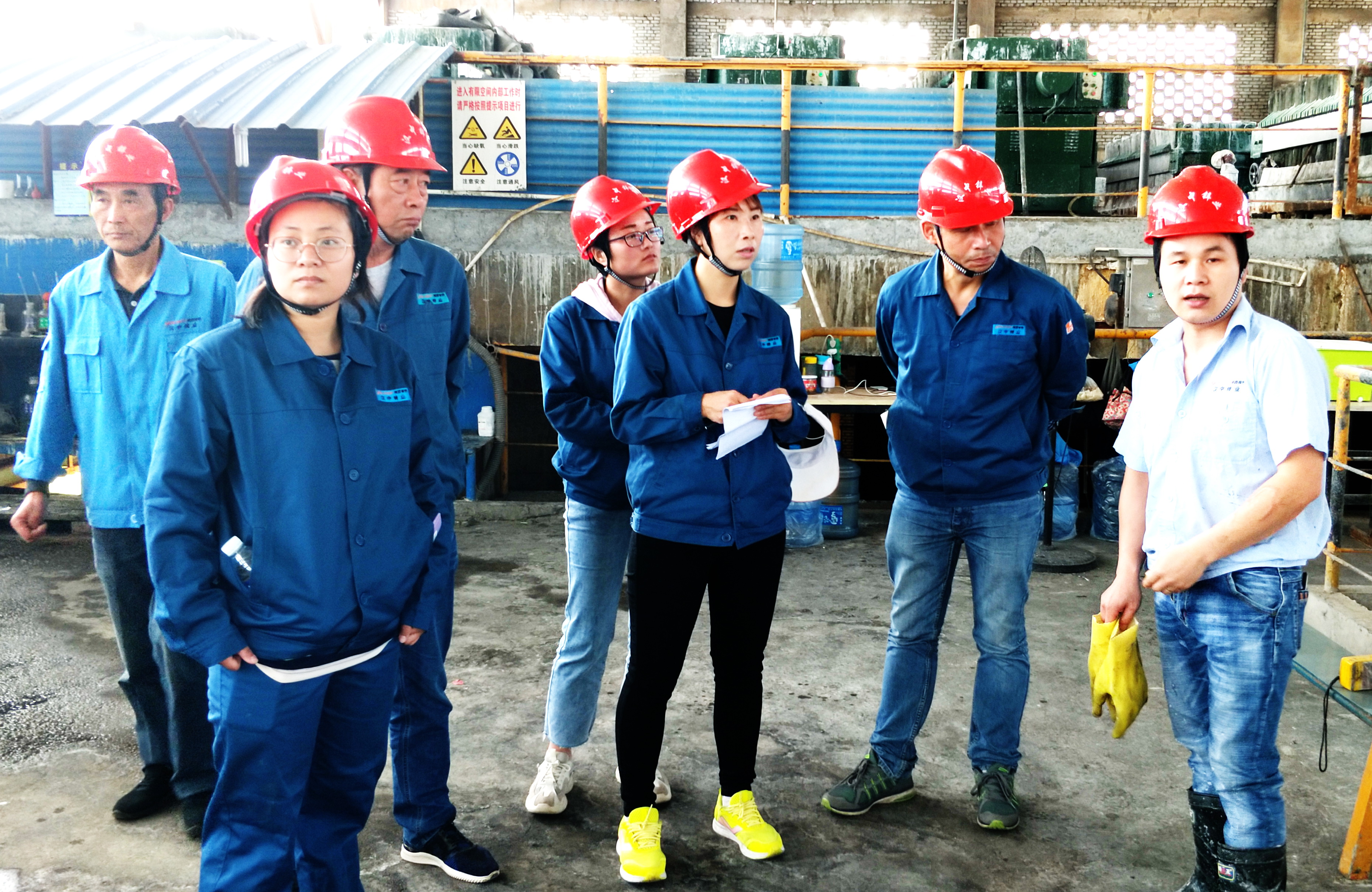當采訪團走進電鋅四車間電解、凈化等崗位,與親愛的員工近距離接觸時,那一個個揮舞著鏟子正在剝鋅皮的師傅們,那動作嫻熟橫空飛行的最美“空姐”,那穿梭在凈化崗位,綻放笑臉的最美女工……莫不是一道道靚麗的風景!