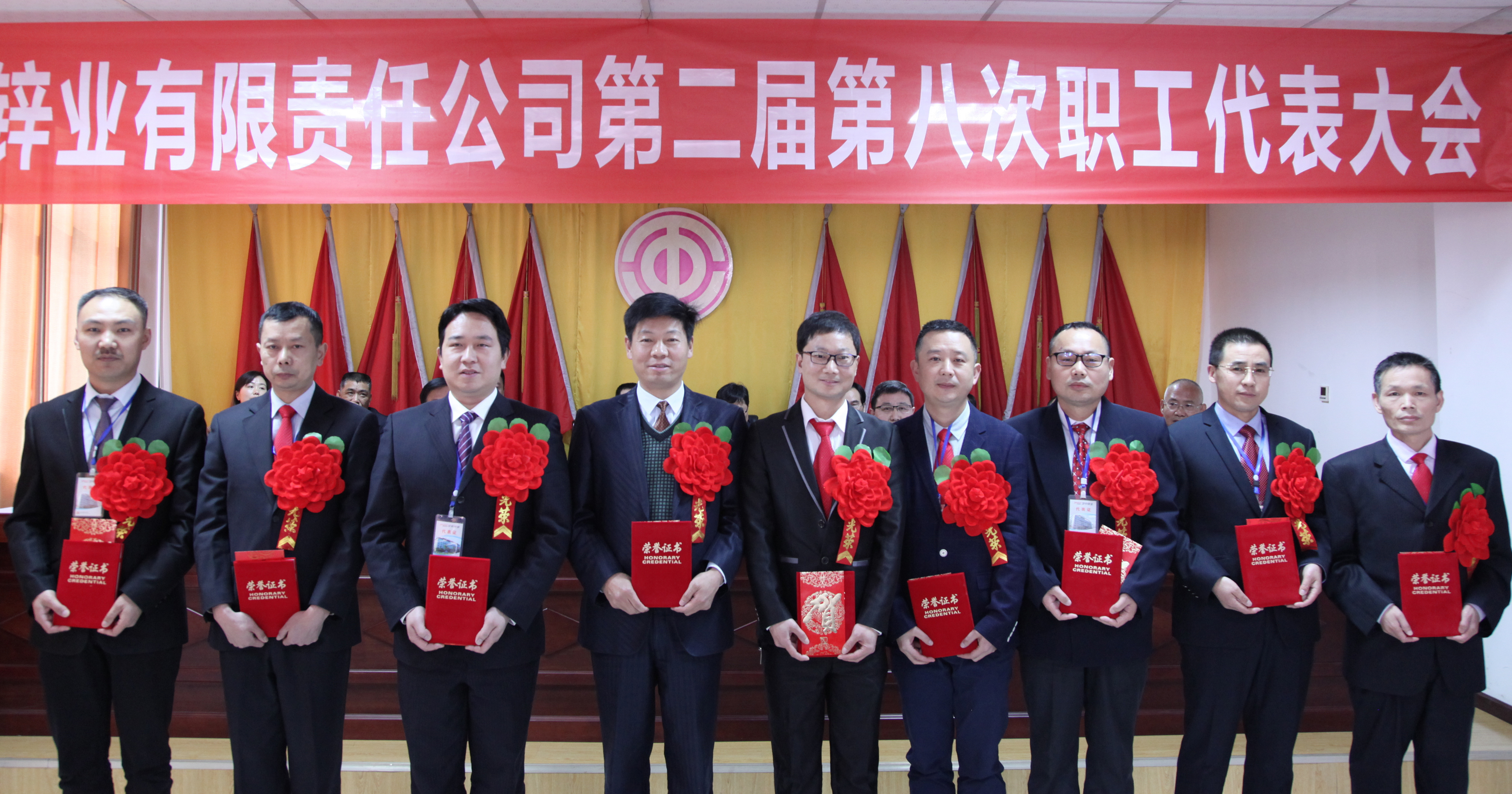 公司領(lǐng)導(dǎo)與2018年度“勞動模范”和“先進集體代表”合影