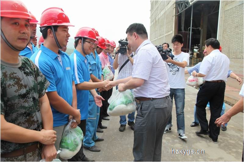 在生產(chǎn)現(xiàn)場(chǎng),魏副市長(zhǎng)發(fā)表了簡(jiǎn)短的講話。他首先代表市委、市政府向炎炎夏日仍然奮戰(zhàn)在生產(chǎn)一線的鋅業(yè)公司職工表示親切的慰問(wèn)和衷心的感謝。他指出,漢中鋅業(yè)公司廣大職工在酷暑中依然堅(jiān)守崗位,奮戰(zhàn)在生產(chǎn)第一線,為全市經(jīng)濟(jì)發(fā)展作出了貢獻(xiàn)。將這些防暑降溫物品發(fā)放到大家手中,一是希望大家能夠在崗位中體會(huì)到一點(diǎn)清涼,更好地立足崗位,做好本職工作;二是提醒大家一定要做到安全生產(chǎn),在做好防暑降溫工作的同時(shí),堅(jiān)決杜絕安全隱患發(fā)生;三是希望公司繼續(xù)加快發(fā)展,爭(zhēng)取做到企業(yè)有發(fā)展,職工得實(shí)惠,為漢中地方經(jīng)濟(jì)發(fā)展做出新的更大的貢獻(xiàn)。